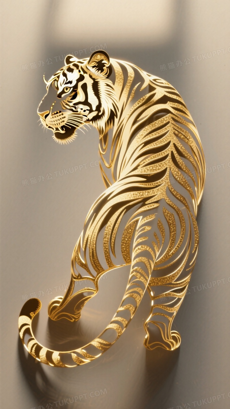 本作品内容为纯色背景用金丝极简抽象绕出一个镂空威猛无比的东北虎形体轮廓, 格式为 jpg, 大小1 MB, 图片尺寸为936 x 1664, 源文件无水印, 欢迎使用熊猫办公。 如认为平台内容涉嫌侵权,可通过邮件:tousu@tukuppt.com提出书面通知,我们将及时处理。