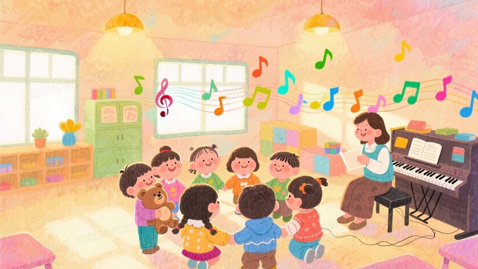 本作品内容为温馨可爱的卡通插画幼儿园的音乐教室里, 格式为 jpg, 大小1 MB, 图片尺寸为1664 x 936, 源文件无水印, 欢迎使用熊猫办公。 如认为平台内容涉嫌侵权,可通过邮件:tousu@tukuppt.com提出书面通知,我们将及时处理。