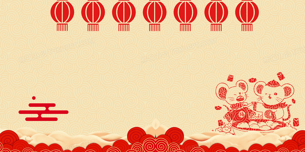 本作品内容为中国风新年除夕老鼠卡通人物背景, 格式为 psd, 大小30 MB, 图片尺寸为2722 x 1361, 作品中背景图片无需修改, 源文件无水印,可以直接使用, 欢迎使用熊猫办公。 如认为平台内容涉嫌侵权,可通过邮件:tousu@tukuppt.com提出书面通知,我们将及时处理。