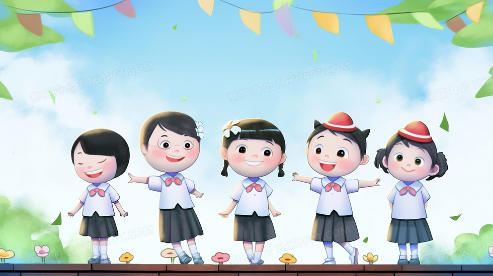 本作品内容为可爱的小朋友在幼儿园毕业晚会舞台上开心的合影拍照卡通插画, 格式为 jpg, 大小2 MB, 图片尺寸为2912 x 1632, 源文件无水印, 欢迎使用熊猫办公。 如认为平台内容涉嫌侵权,可通过邮件:tousu@tukuppt.com提出书面通知,我们将及时处理。