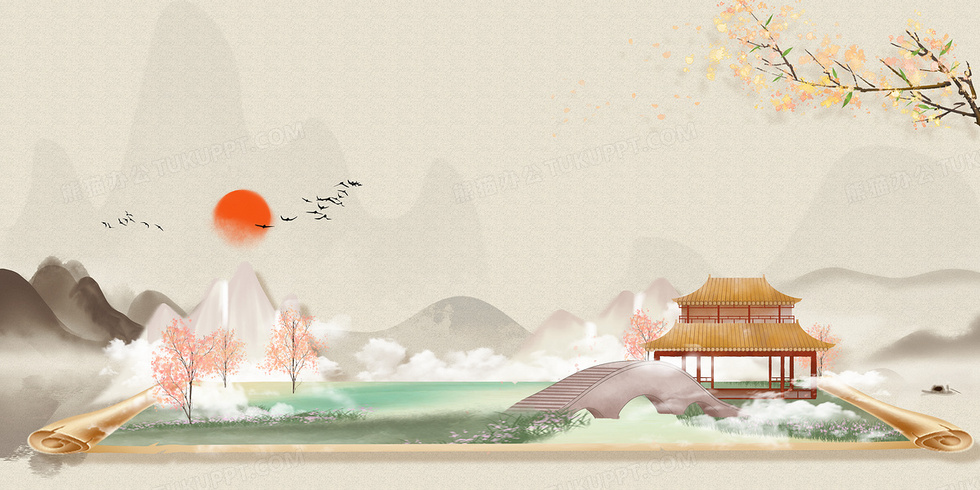本作品内容为中国风山水卷轴古风意境新中式背景, 格式为 psd, 大小51 MB, 图片尺寸为4724 x 2362, 作品中背景图片无需修改, 源文件无水印,可以直接使用, 欢迎使用熊猫办公。 如认为平台内容涉嫌侵权,可通过邮件:tousu@tukuppt.com提出书面通知,我们将及时处理。